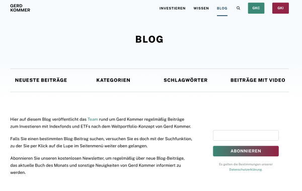 Hier auf diesem Blog veröffentlicht das Team rund um Gerd Kommer regelmäßig Beiträge zum Investieren mit Indexfonds und ETFs nach dem Weltportfolio-Konzept von Gerd Kommer.