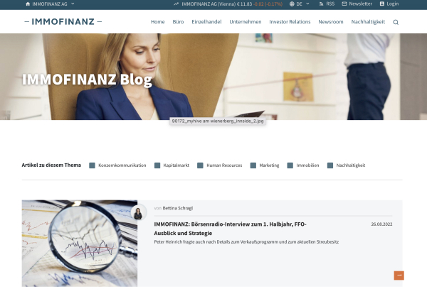 IMMOFINANZ - ein börsennotierter europäischer Gewerbeimmobilienkonzern mit Fokus auf zwei Assetklassen: Büro und Einzelhandel in acht Kernmärkten.
