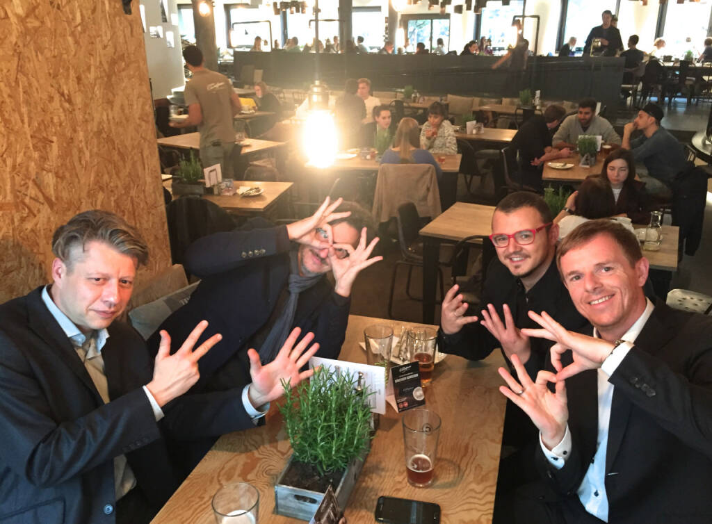 Mein "Lieblingsgermane" (das hab ich schon oft gesagt) ist Christian-Hendrik Knappe vom Zertifikateteam der Deutsche Bank. Gestern feierte er sein 8-jähriges Jubiläum bei der Bank mit einem österreichischen Quartett: Robert Gillinger, Michael Plos, Josef Chladek und ich arbeiteten früher alle beim Börse Express, jetzt sind wir auf BE und BSN aufgeteilt, aber wer weiss schon in dieser schnellen Welt. Die Konstante ist Christian-Hendrik also: Ein toller Geschäftspartner, ein lässiger Kumpel. Mit ihm macht Arbeiten besonders Spass (und mir macht ja Arbeiten generell Spass).