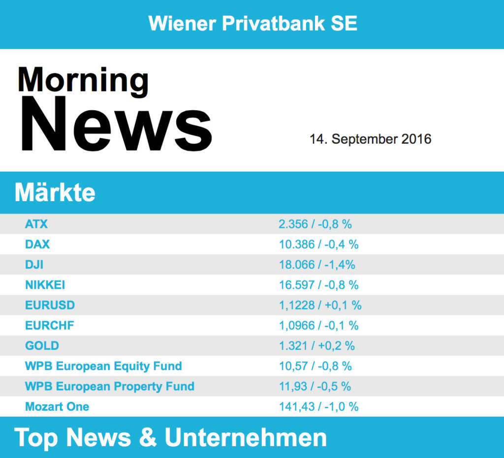 Aus den Morning News der Wiener Privatbank: "Wiener Börse hat sich gestern Mittwoch mit deu...
