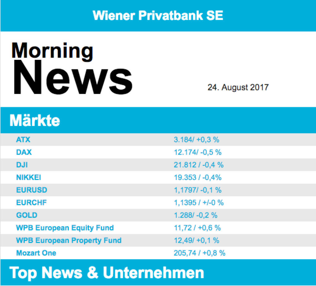 Aus den Morning News der Wiener Privatbank: "Wiener Börse hat sich gestern Mittwoch mit deu...