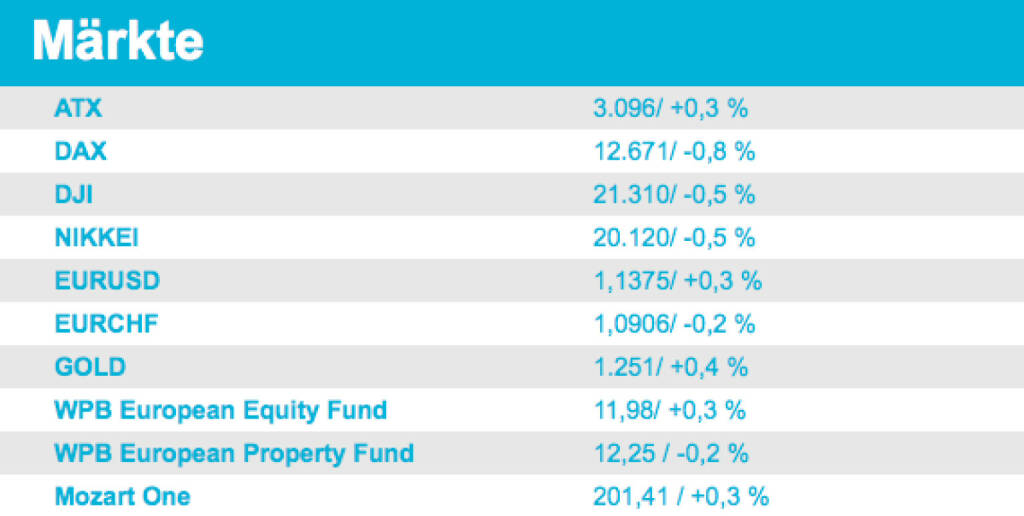 Aus den Morning News der Wiener Privatbank: "In einem verhaltenen europäischen Umfeld hat s...