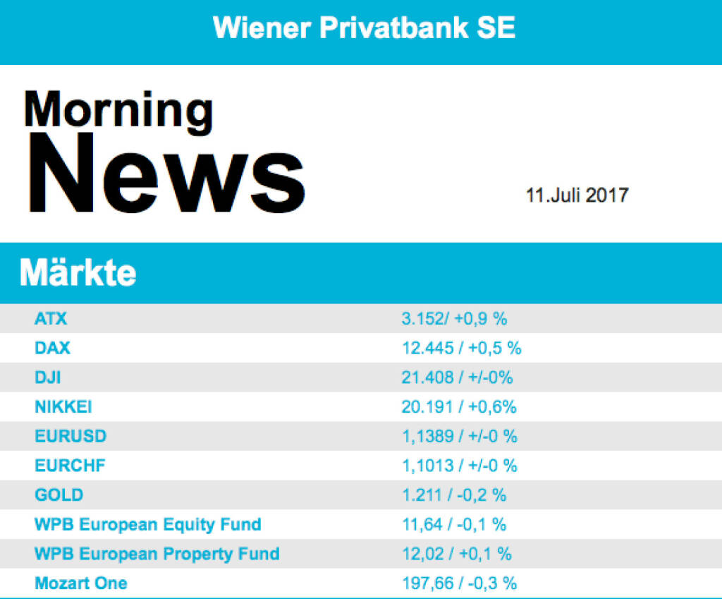 Aus den Morning News der Wiener Privatbank: "In einem verhaltenen europäischen Umfeld hat s...