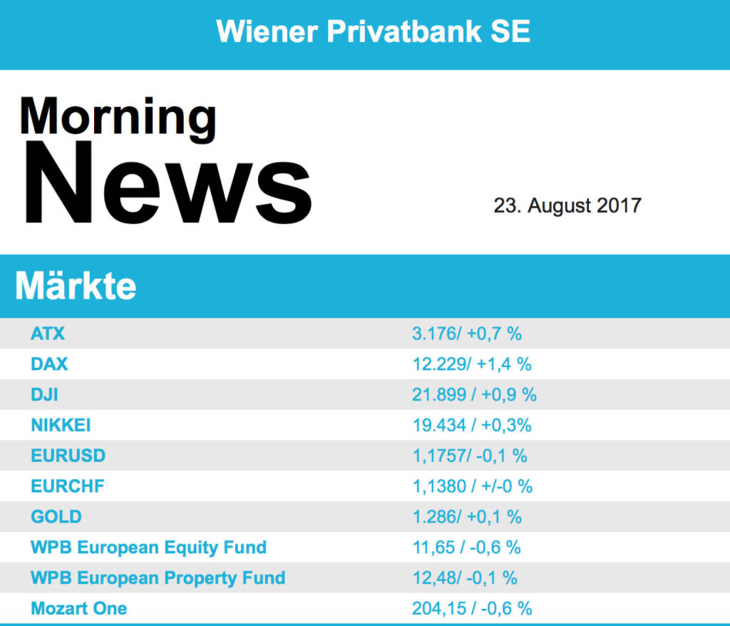 Aus den Morning News der Wiener Privatbank: "Die Wiener Börse hat gestern Mittwoch gut beha...