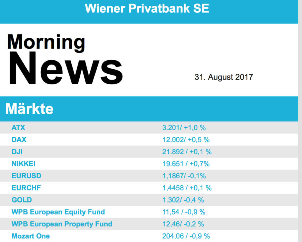 Aus den Morning News der Wiener Privatbank: "Die Wiener Börse hat sich gestern Dienstag wie...