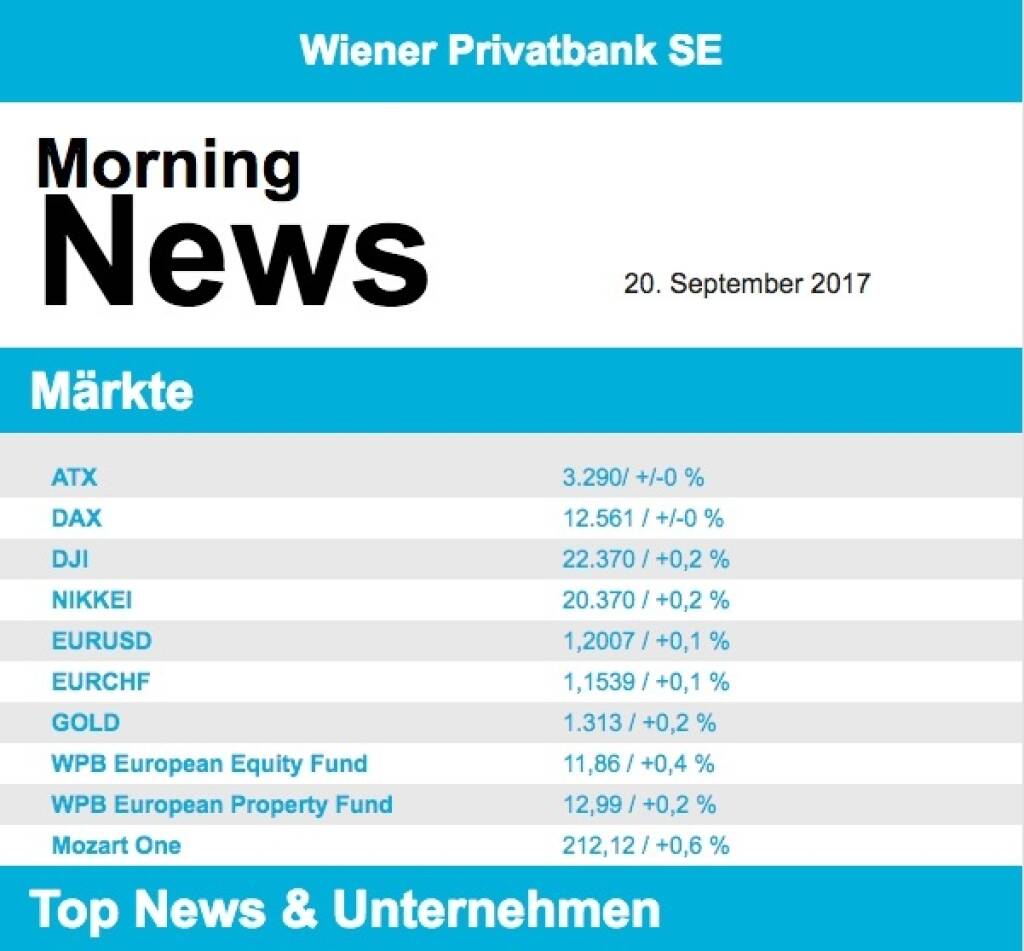 Aus den Morning News der Wiener Privatbank: "Die Wiener Börse hat sich gestern Dienstag wie...