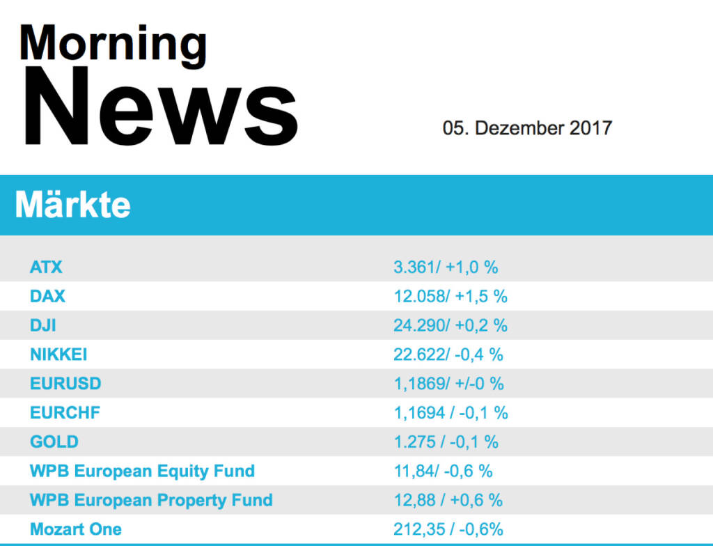 Aus den Morning News der Wiener Privatbank: "Die Wiener Börse hat sich gestern Montag wiede...