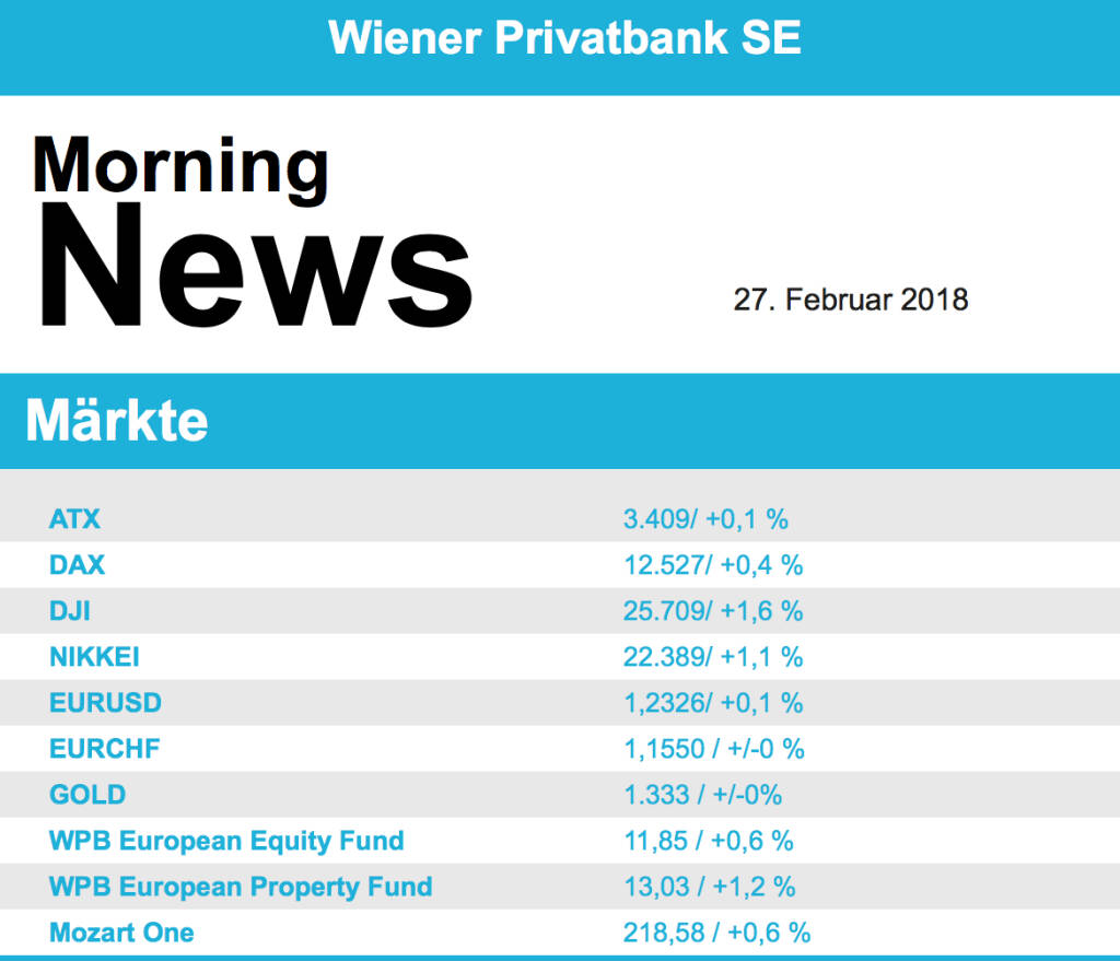 Aus den Morning News der Wiener Privatbank: "Die Wiener Börse hat sich gestern Mittwoch kna...