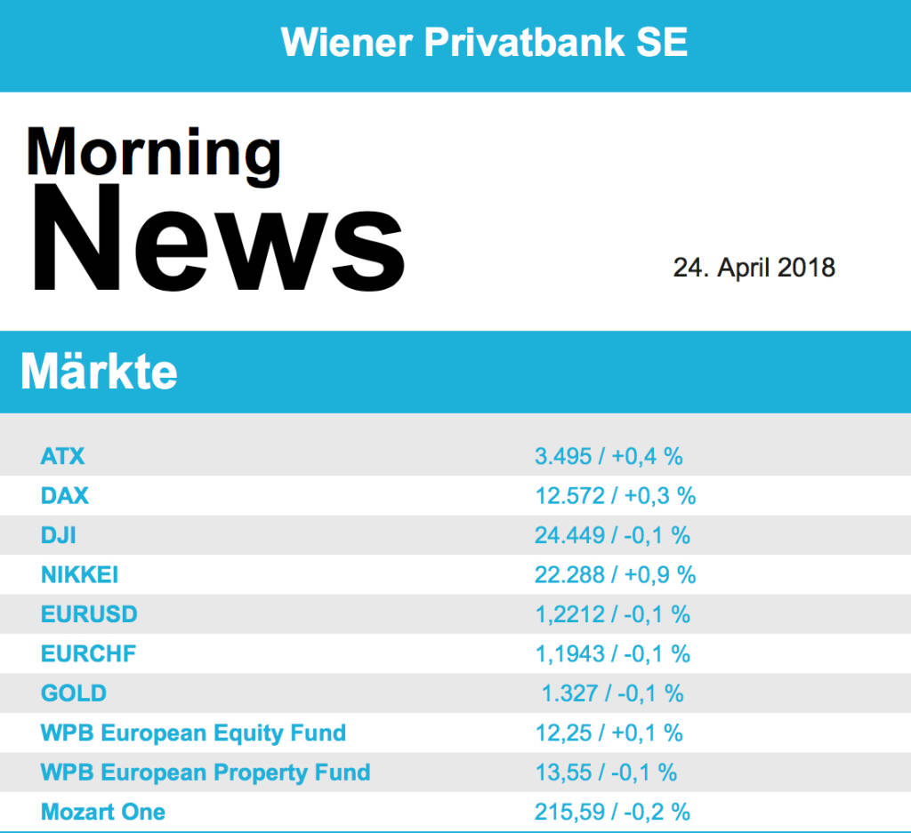 Aus den Morning News der Wiener Privatbank: "Die Wiener Börse hat sich gestern Mittwoch kna...
