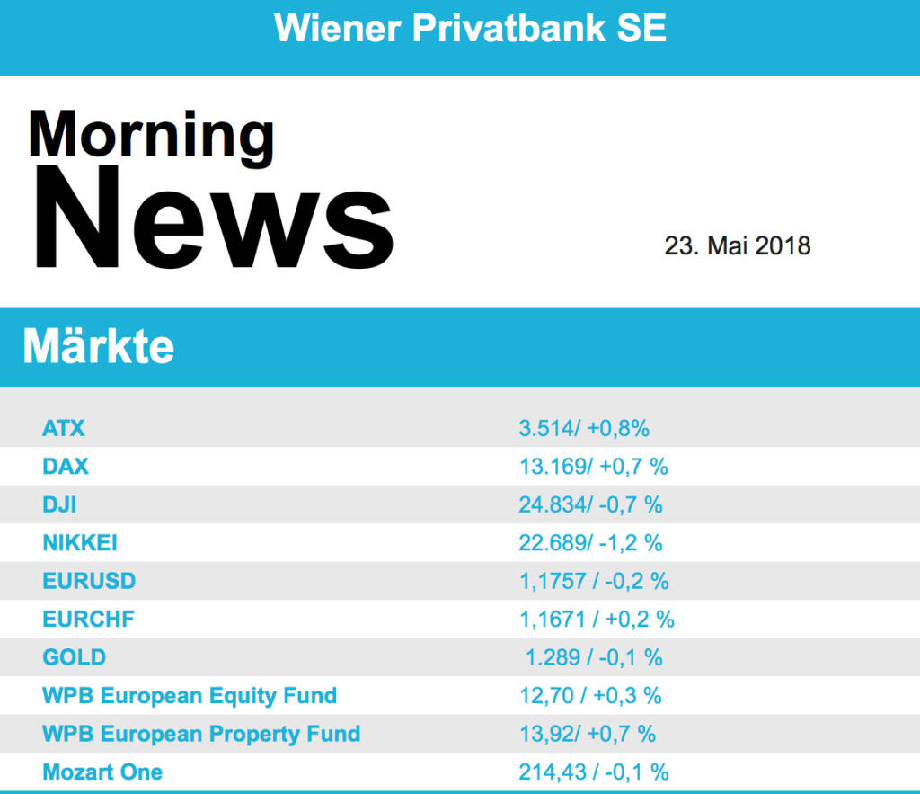 Aus den Morning News der Wiener Privatbank: "Die Wiener Börse hat sich gestern Mittwoch kna...