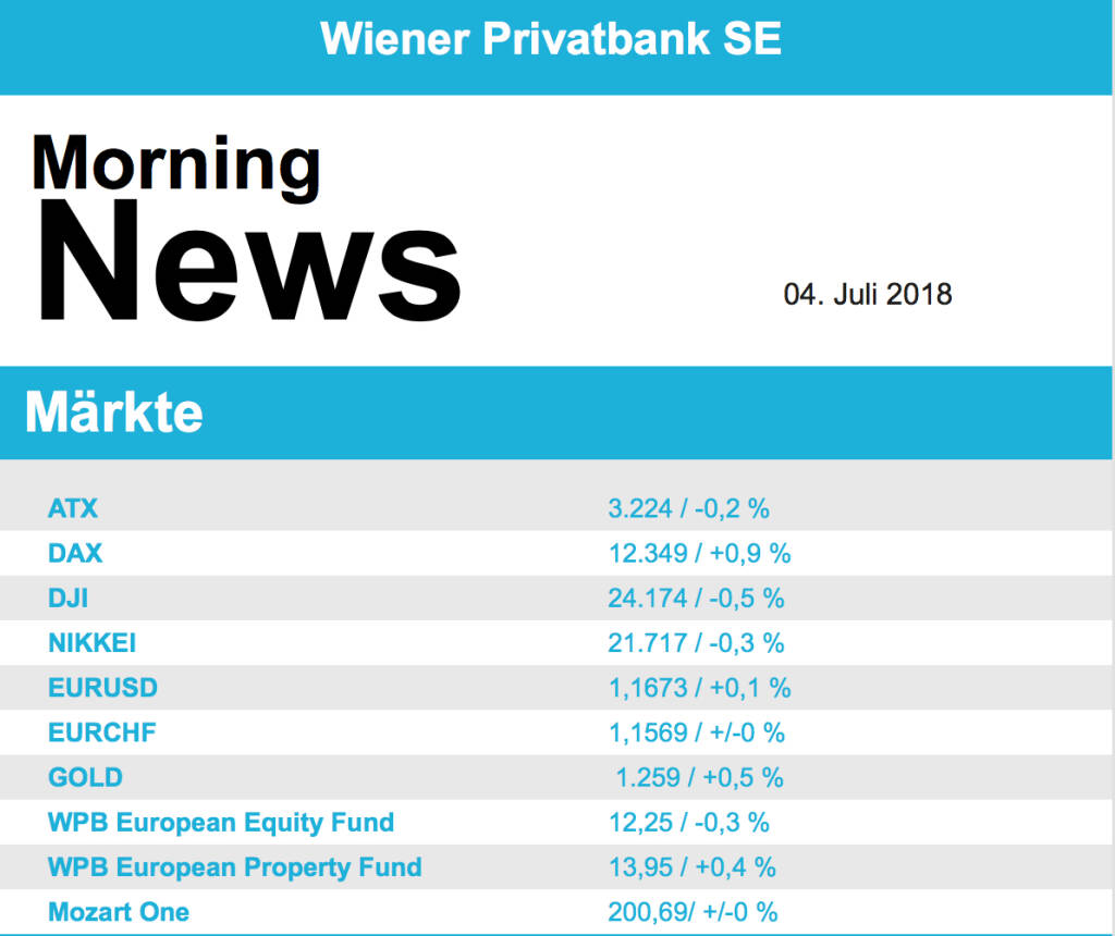 Aus den Morning News der Wiener Privatbank: "Die Wiener Börse hat sich gestern Montag wiede...