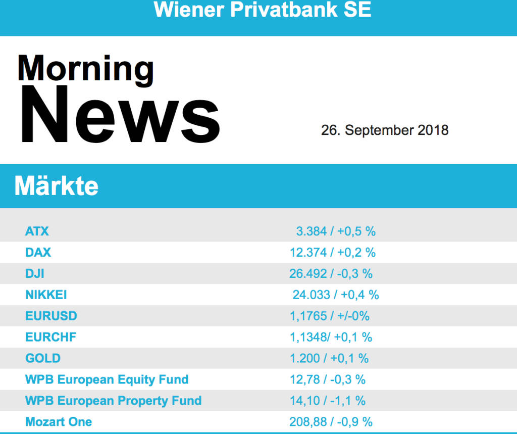 Aus den Morning News der Wiener Privatbank: "Der Wiener Aktienmarkt hat sich gestern Dienstag mi...