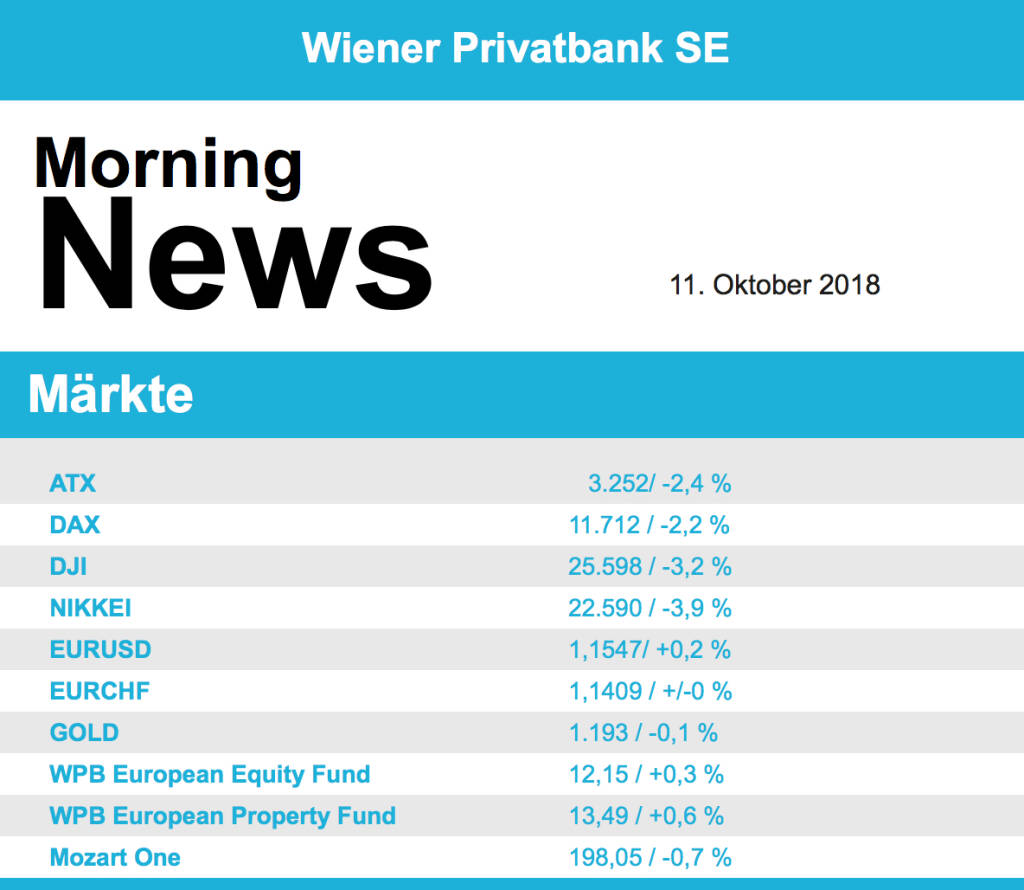 Aus den Morning News der Wiener Privatbank: "In einer international vorsichtigeren Anlegerstimmu...