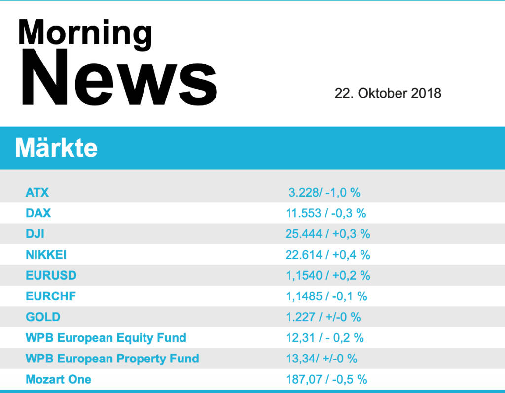Aus den Morning News der Wiener Privatbank: "In einer international vorsichtigeren Anlegerstimmu...