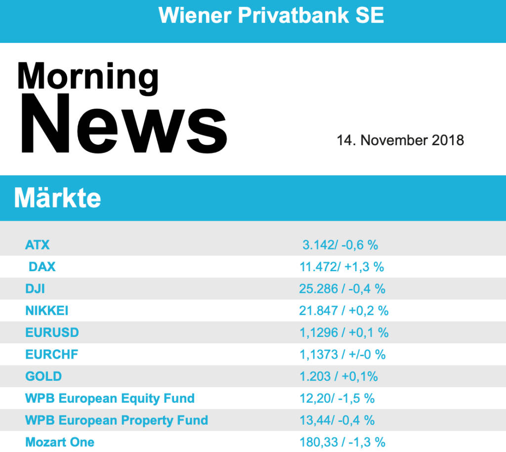 Aus den Morning News der Wiener Privatbank: "In einer international vorsichtigeren Anlegerstimmu...