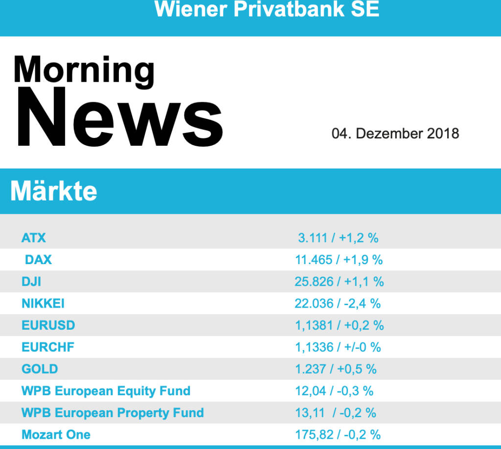 Aus den Morning News der Wiener Privatbank: "In einer international vorsichtigeren Anlegerstimmu...