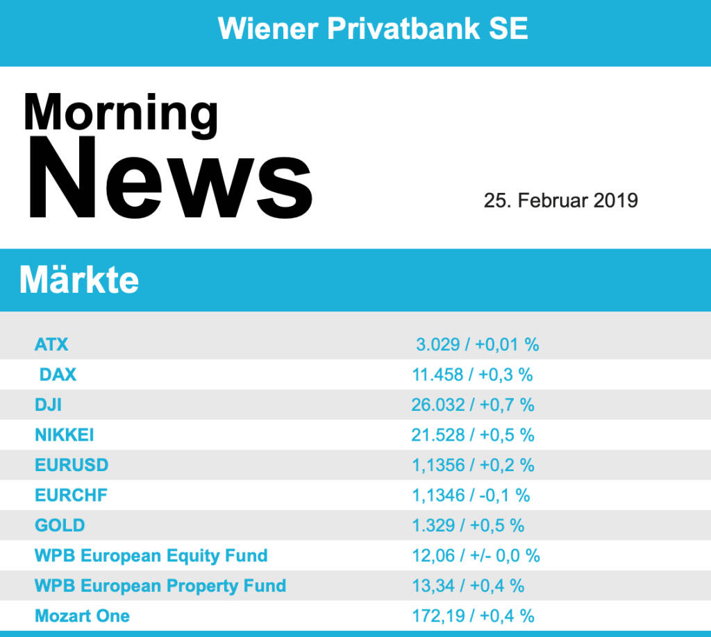 Aus den Morning News der Wiener Privatbank: "In einer international vorsichtigeren Anlegerstimmu...