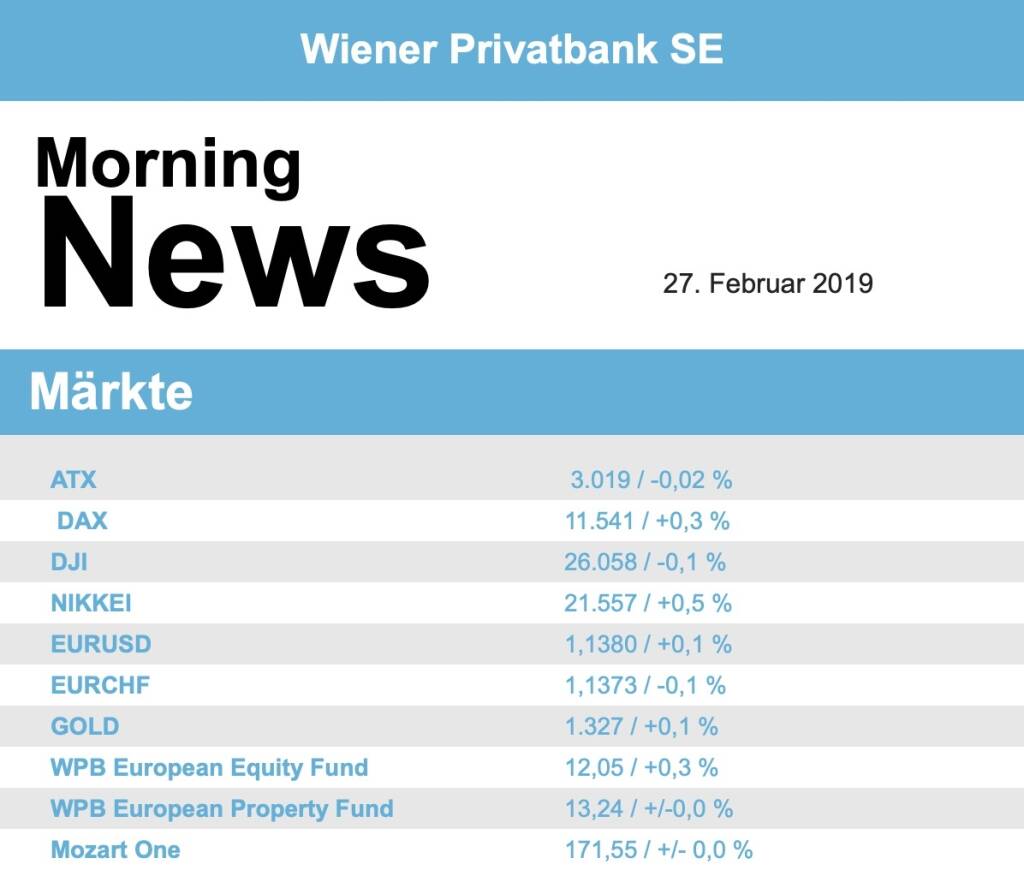 Aus den Morning News der Wiener Privatbank: "In einer international vorsichtigeren Anlegerstimmu...