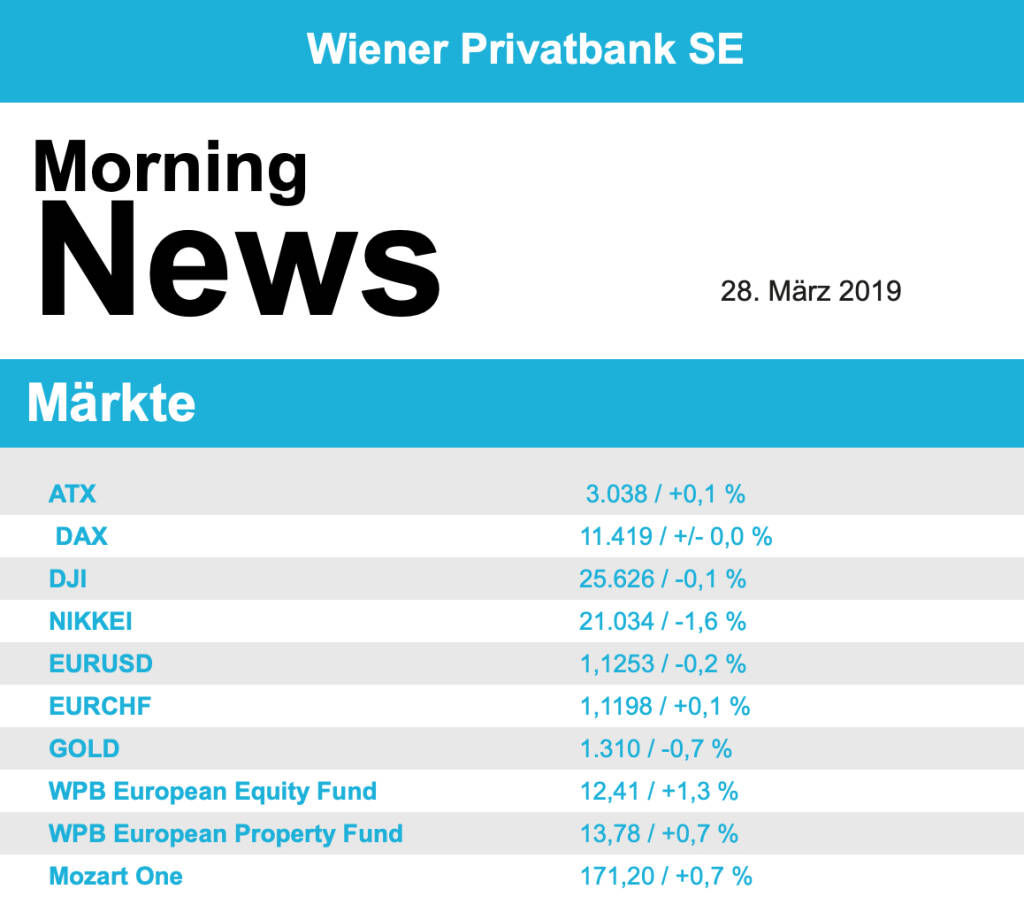 Aus den Morning News der Wiener Privatbank: "In einer international vorsichtigeren Anlegerstimmu...