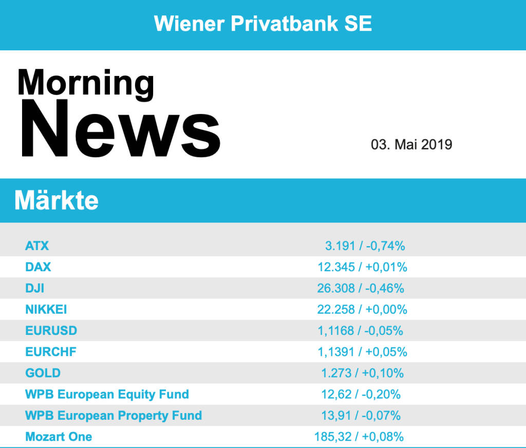 Aus den Morning News der Wiener Privatbank: "In einer international vorsichtigeren Anlegerstimmu...