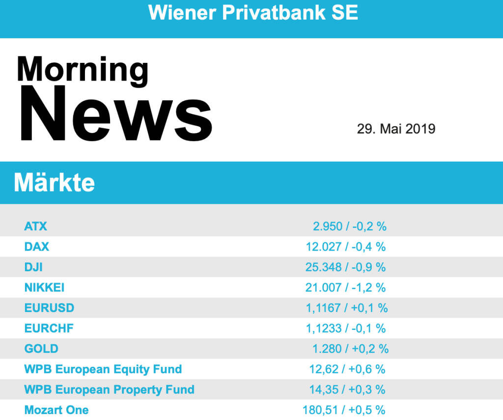 Aus den Morning News der Wiener Privatbank: "In einer international vorsichtigeren Anlegerstimmu...