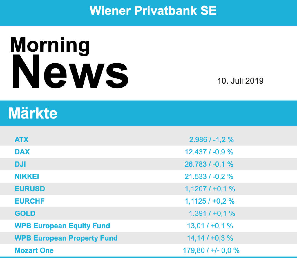 Aus den Morning News der Wiener Privatbank: "In einer international vorsichtigeren Anlegerstimmu...