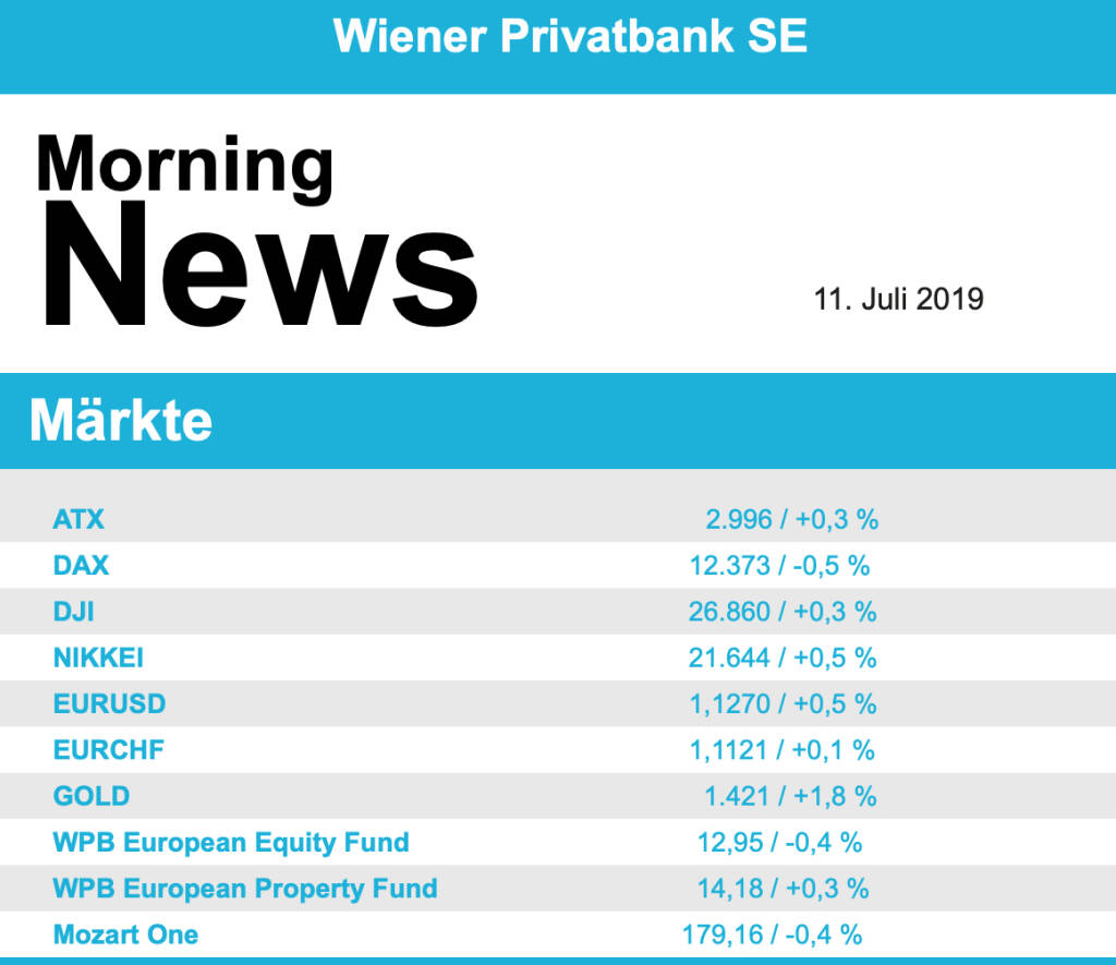 Aus den Morning News der Wiener Privatbank: "In einer international vorsichtigeren Anlegerstimmu...