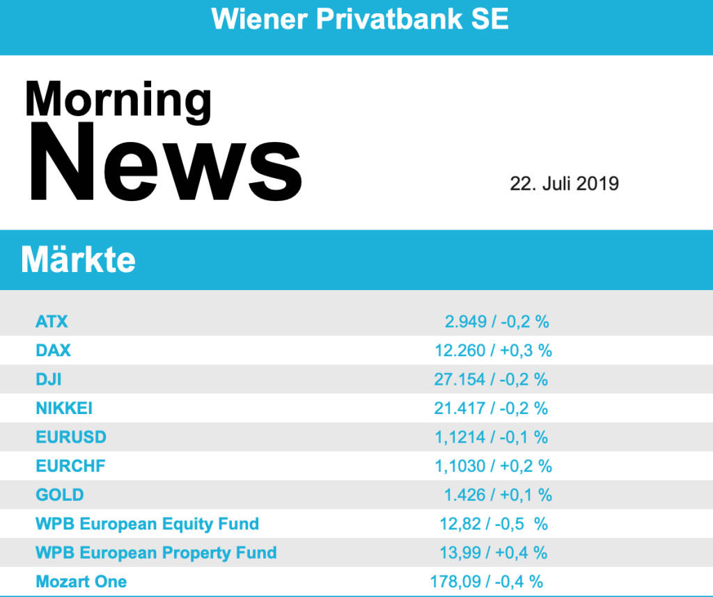 Aus den Morning News der Wiener Privatbank: "In einer international vorsichtigeren Anlegerstimmu...