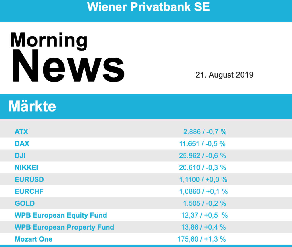 Aus den Morning News der Wiener Privatbank: "In einer international vorsichtigeren Anlegerstimmu...