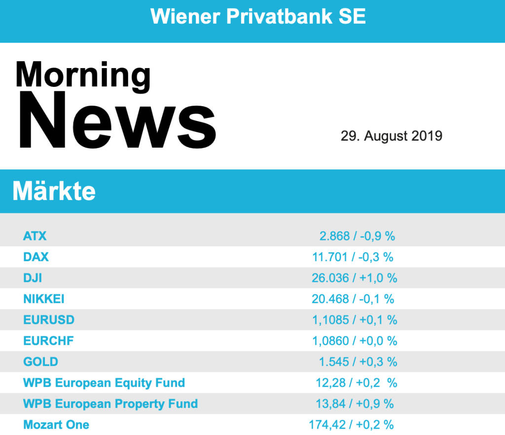 Aus den Morning News der Wiener Privatbank: "In einer international vorsichtigeren Anlegerstimmu...