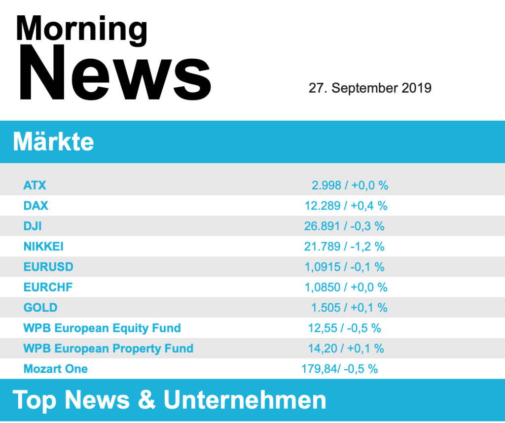 Aus den Morning News der Wiener Privatbank: "Die Wiener Börse hat sich gestern Donnerstag n...