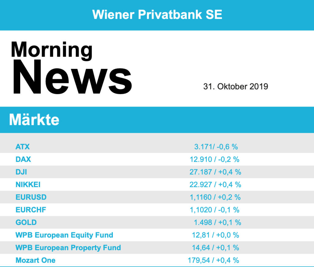 Aus den Morning News der Wiener Privatbank: "In einer international vorsichtigeren Anlegerstimmu...