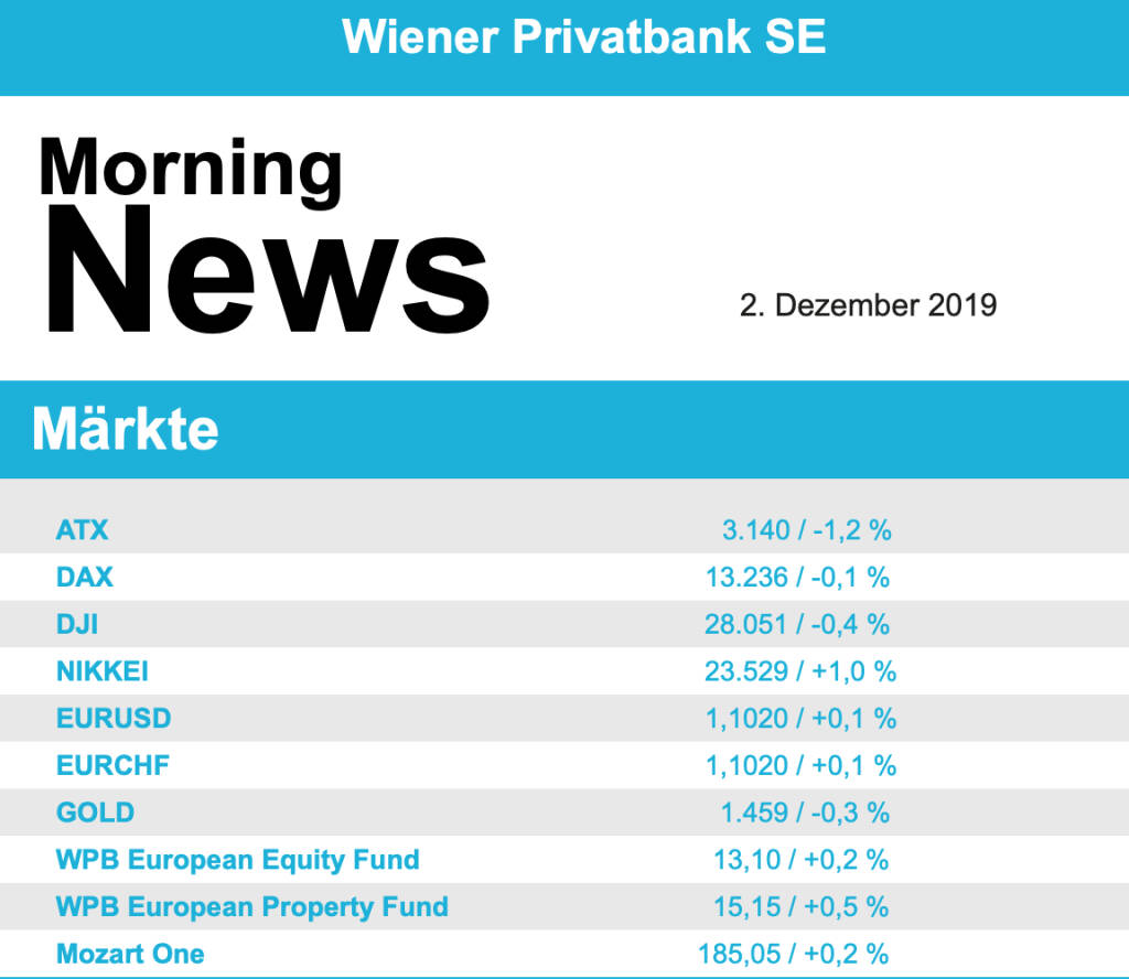 Aus den Morning News der Wiener Privatbank: "In einer international vorsichtigeren Anlegerstimmu...