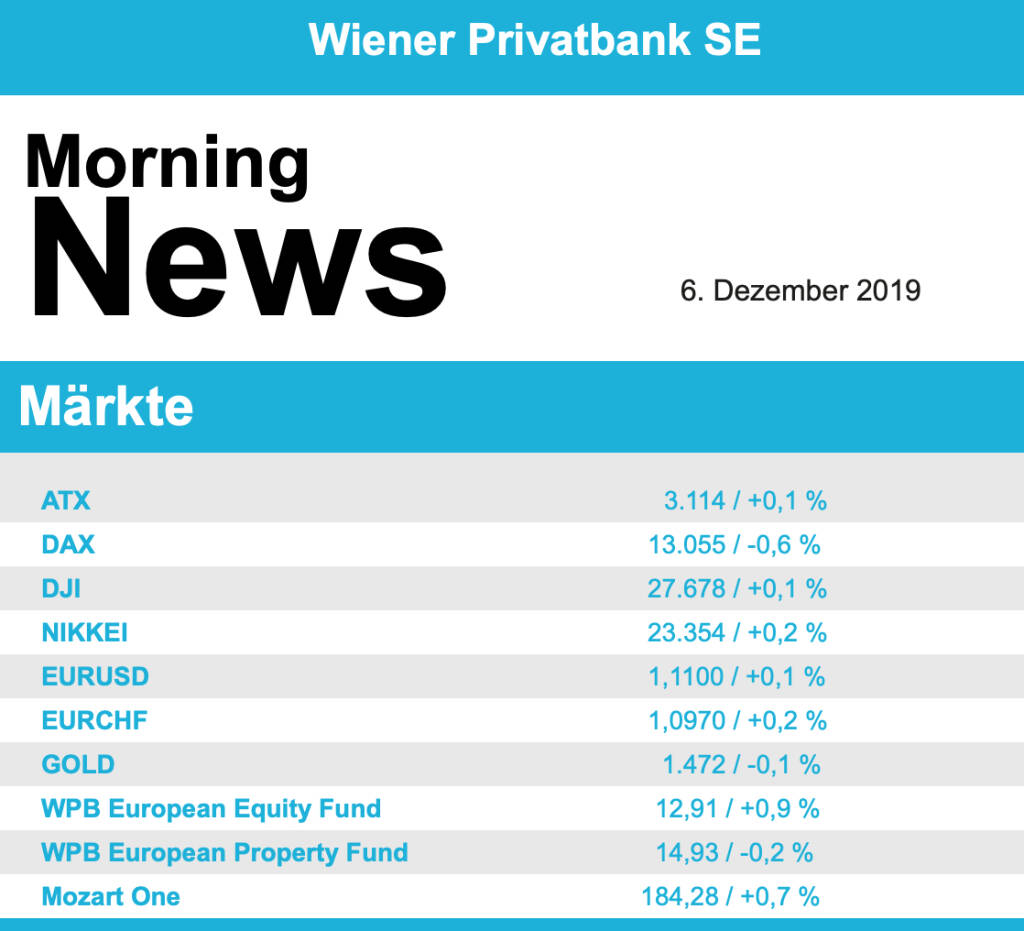 Aus den Morning News der Wiener Privatbank: "In einer international vorsichtigeren Anlegerstimmu...