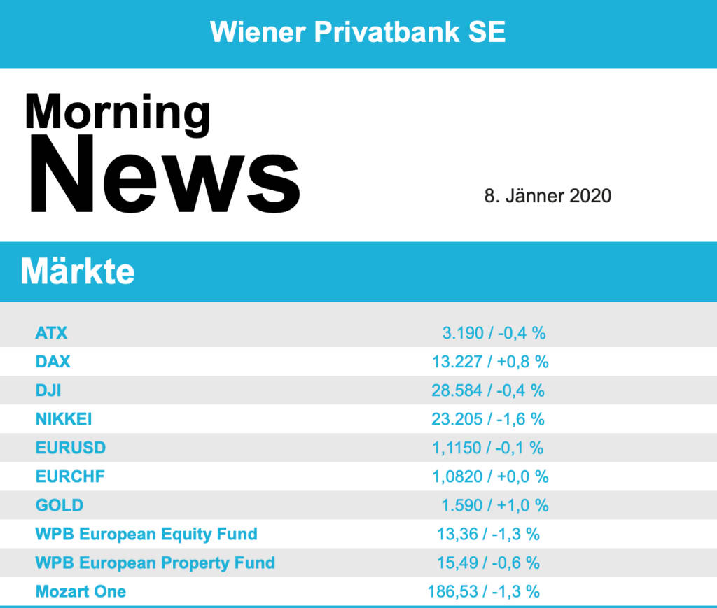 Aus den Morning News der Wiener Privatbank: "In einer international vorsichtigeren Anlegerstimmu...