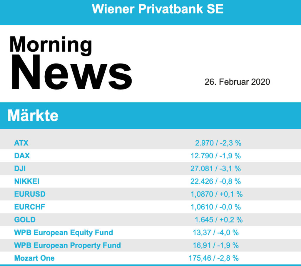 Aus den Morning News der Wiener Privatbank: "In einer international vorsichtigeren Anlegerstimmu...