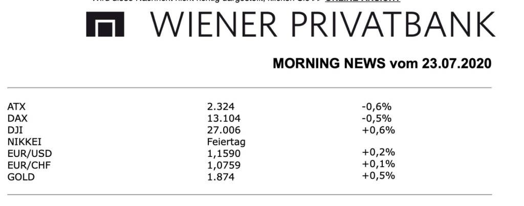 Aus den Morning News der Wiener Privatbank: "In einer international vorsichtigeren Anlegerstimmu...