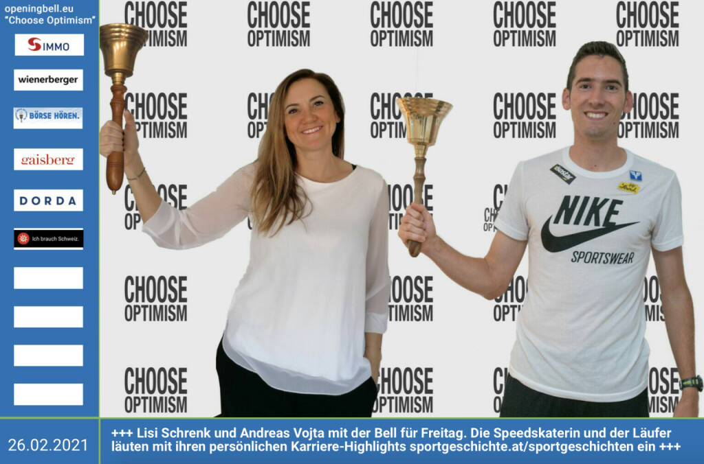 26.2.: Lisi Schrenk und Andreas Vojta mit der Bell für Freitag. Die Speedskaterin und der Läufer läuten mit ihren persönlichen Karriere-Highlights https://sportgeschichte.at/sportgeschichten ein