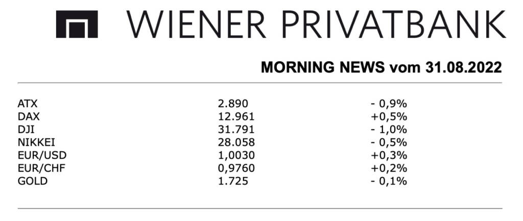 Aus den Morning News der Wiener Privatbank: Die heimische Börse musste den gestrigen Handel schwächer beenden, obwohl der ATX über weite Strecken klar im Plus gelegen war. Am Nachmittag zogen dann dunkle Wolken in Form einer gestiegenen deutschen Inflation auf, wodurch die Sorgen vor einer strafferen EZB-Zinspolitik wieder deutlich zunahmen, eine schwächere Eröffnung in der Wall Street sorgte dann für zusätzliche Verkäufe, so dass es für das heimische Börsenbarometer letztendlich um 0,9% nach unten ging. Bei den heimischen Unternehmen standen gestern einige Ergebnisveröffentlichungen auf dem Plan, Pierer Mobility meldete für das erste Halbjahr einen deutlichen Ergebnisrückgang, am Vorabend hatte der Motorradhersteller aber die Umsatzprognose für das Gesamtjahr angehoben, dadurch konnte der Titel um deutliche 5,7% zulegen. Positiv aufgenommen wurden auch die Halbjahresergebnisse von Warimpex, das Immobilienunternehmen hat im Berichtszeitraum seinen Gewinn gegenüber der ersten Jahreshälfte 2021 von 1,7 Millionen auf 13,4 Millionen Euro verbessert, geholfen hat dabei auch die deutliche Aufwertung des russischen Rubel, da ja etwa die Hälfte des Geschäftes in Russland gemacht wird, für die Aktie ging es um 3,1% nach oben. Der Baukonzern Porr hat seine Produktionsleistung im ersten Halbjahr 2022 um gut 10 Prozent gesteigert und seinen Gewinn deutlich ausgebaut, der Auftragsbestand befindet sich mit mehr als 8 Milliarden Euro auf Rekordniveau, dennoch reagierten die Anleger auf diese Nachrichten wenig erfreut und schickten den Titel um 3,3% nach unten.