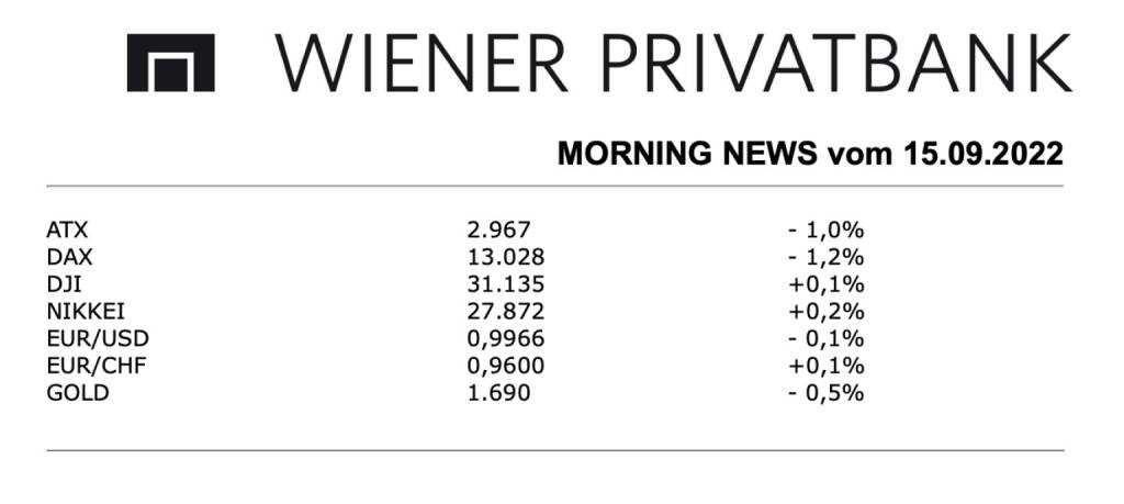 Aus den Morning News der Wiener Privatbank: Auch die Wiener Börse ist am Mittwoch mit deutlichen Abschlägen aus dem Handel gegangen und setzte damit den negativen Trend des Vortages fort. Im Lauf des Vormittags weiteten die Aktienmärkte die Verluste aus, um sich dann nach US-Erzeugerpreisdaten und dem US-Börsenstart auf niedrigem Niveau zu stabilisieren, schlussendlich endete das heimische Börsenbarometer um 1,0% tiefer als am Vortag. Zu den einzelnen Unternehmen gab es gestern kaum Meldungen, eine Ausnahme bildeten die Versorger. Dort sollen die Einnahmen von Unternehmen, die Strom aus anderen Quellen als Gas produzieren, nach dem Willen der EU-Kommission künftig ab 180 Euro je Megawattstunde eingezogen und an belastete Verbraucher umverteilt werden, was von Analysten als leicht negative Überraschung gewertet wurde, zuvor war noch von 200 Euro je MWh die Rede gewesen, für den Verbund ging es um 1,5% nach unten, EVN musste gestern 2,6% nachgeben. Immofinanz endete mit einem Rückgang von 0,6%, hier hatte die Erste Group die Empfehlung für die Aktie von „Reduce“ auf „Hold“ angehoben, aber gleichzeitig das Kursziel von 22,8 Euro auf 16,8 Euro reduziert.