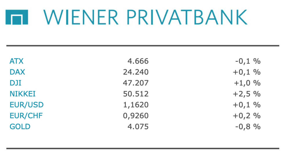 Aus den Morning News der Wiener Privatbank: "In einem verhaltenen europäischen Umfeld hat s...