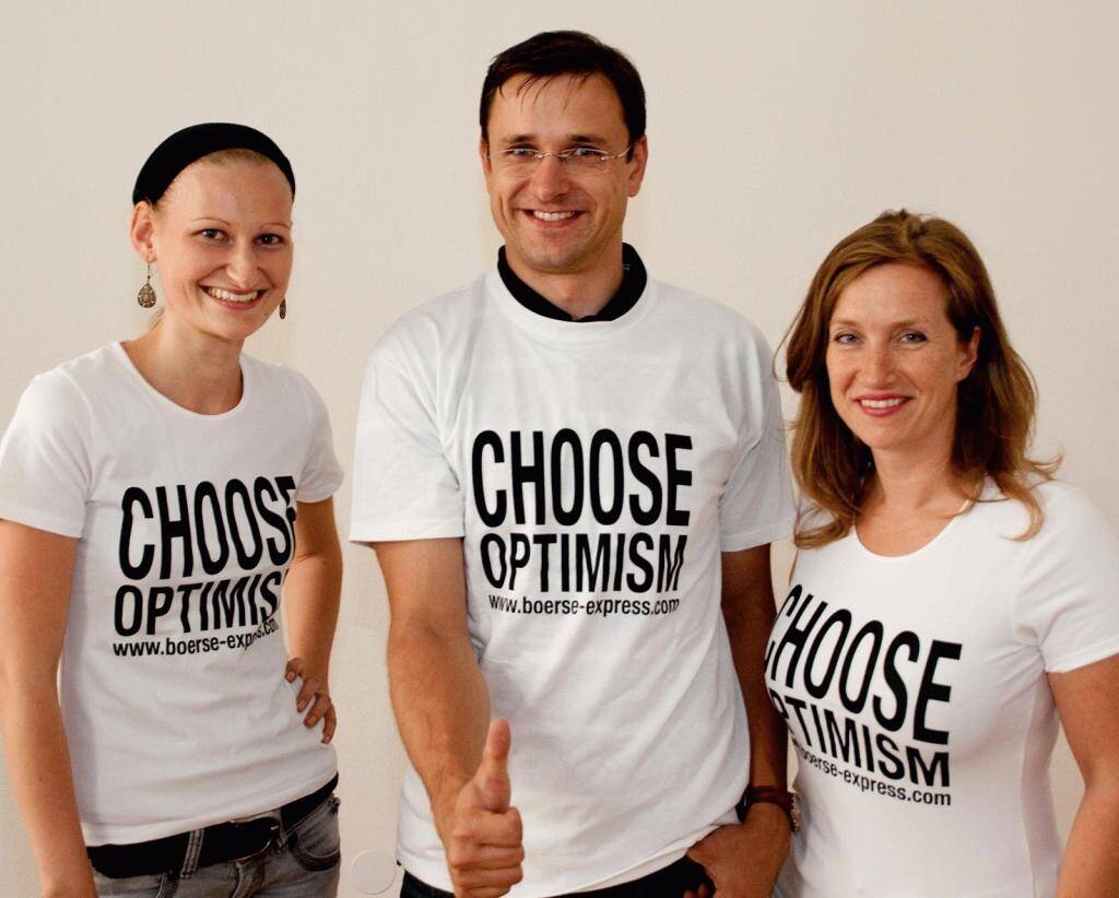 Ich habe gestern mit Börse Express-Chef Robert Gillinger über meine alte BE-Idee "Choose Optimism" gesprochen und wir haben eine völlig unkomplizierte Form gefunden, wie ich diese Leiberl-Aktion Choose Optimism mit meinen neuen Projekten weiterführen kann, auch wenn ich nicht mehr beim BE bin. Danke Robert. Denn es ist wieder Zeit für "Choose Optimism".
