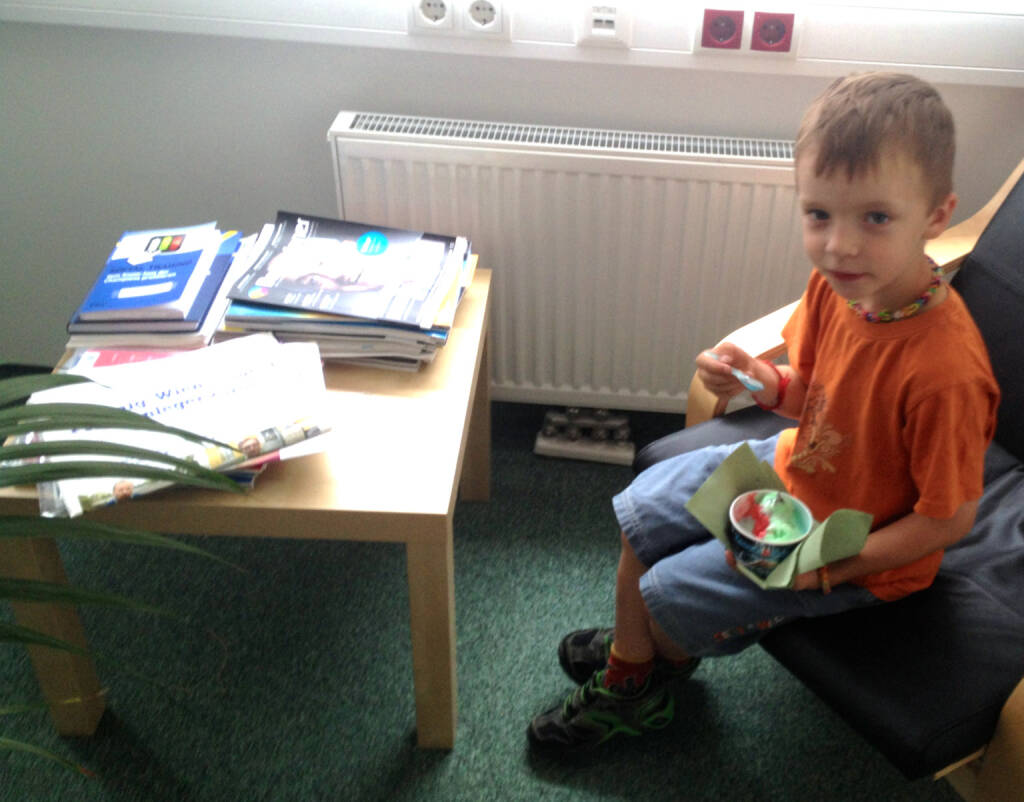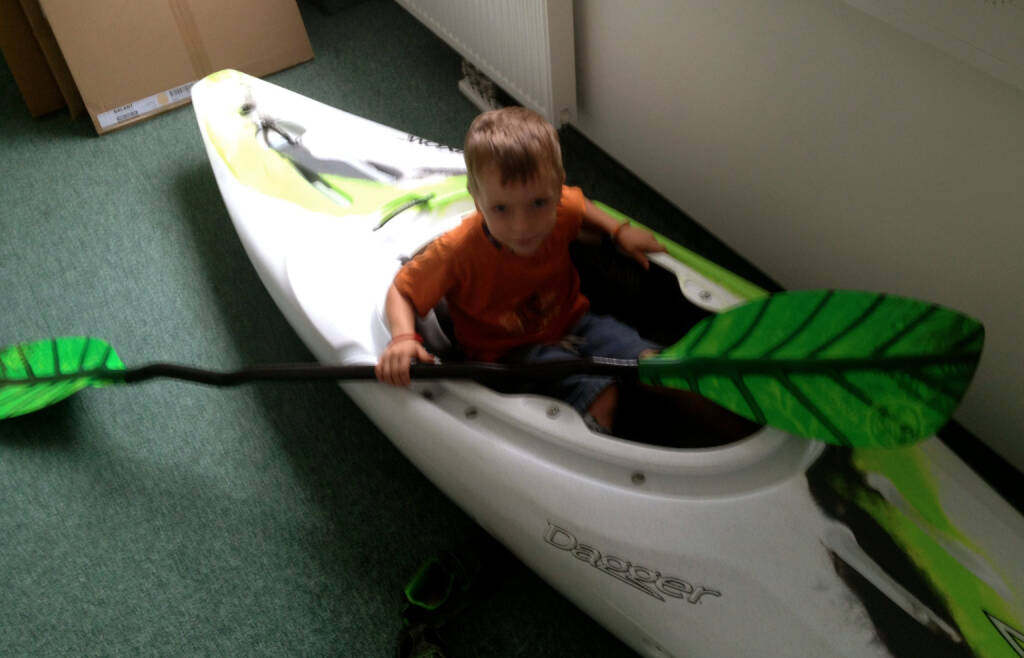 Ich hatte am Mittwoch ein kleines Update-Date bei unserem Partner wikifolio. Themen: "Fussballdress" und "Webinar am 21.10". Über beides werde ich noch berichten. Da der Herr Sohnemann am Nachmittag mitspaziert ist und ein Eis wollte, haben wir wikifolio gleich zwei "grüne Sorten" mitgebracht. Der Bube (6) interessierte sich für sein Eis und nicht für das Trading. Dafür aber wiederum für das Kajak von Oberwikifolianer Andreas Kern. Ein Sitztest wurde genehmigt.