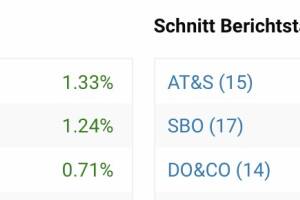 Um 11:18 liegt der ATX TR mit -0.08 Prozent im Minus bei 7616 Punkten (Ultimo 2020: 5466). Topperformer der PIR-Group sind Verbund mit +1.87% auf 94.125 Euro, dahinter Rosenbauer mit +1.60% auf 47.75 Euro und UBM mit +1.02% auf 44.45 Euro. Zum Vergleich der DAX: 15536 (+0.11%, Ultimo 2020: 13719). Heute hat die Telekom Austria gute Zahlen geliefert , die Aktie war stets die Nr. 1 in unserem Berichtstags-Ranking. Dabei schreiben wieder den " Berichtstags-Trend " mit. Wer konnte mit den Quartalszahlen in der Regel überzeugen, wer enttäuschte? Wer hatte einen guten Ausblick? Der Sekundärmarkt gibt stets direkte Antworten. Allerdings: Wir erfassen das nur für den ATX TR und die Telekom ist ja nicht mehr dabei. Die neuen Leader sind SBO , die an Berichtstagen im Schnitt um 1... » Weiterlesen
