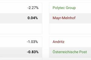 Um 11:32 liegt der ATX TR mit +0.34 Prozent im Plus bei 7646 Punkten (Ultimo 2020: 5466). Topperformer der PIR-Group sind Österreichische Post mit +1.15% auf 37.375 Euro, dahinter Strabag mit +1.12% auf 38.275 Euro und Erste Group mit +1.11% auf 39.11 Euro. Zum Vergleich der DAX: 15482 ( -0.07%, Ultimo 2020: 13719). - Wie sich Valneva einreiht - Bei Strabag 3x hingeschaut - Aktienturnier: RBI, Polytec, Zumtobel, Post virtuell im Semifinale - Thomas Arnoldner führt im LinkedIn-Ranking des Management-Club, Anmerkungen dazu - PIR-News: RHI Magnesita, Valneva, Research zu AT&S und Valneva - Neue SPAC an der Deutschen Börse - Unser Robot sagt: Porr, AT&S, Immofinanz und weitere Aktien auffällig; Andreas Klauser führt den 3. Tag im CEO-Ranking - Smeil Nominierungen 2021: ... » Weiterlesen
