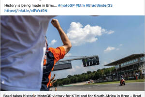 KURZE: Toller Erfolg für Pierer Mobility : Die MotoGP-Geschichte ist seit Sonntag auf dem Masarykring von Brünn um eine Sieger-Marke reicher, Pierers KTM hat knapp fünf Jahre nach dem Roll-out der RC16 (es geschah in Spielberg im Oktober 2015) erstmals in der Königsklasse triumphiert. Vor allem die Art und Weise des souveränen Auftritts von Brad Binder hat massiv Eindruck bei der Konkurrenz hinterlassen. Pierer Mobility AG ( Akt. Indikation: 50,00 50,50, 0,90%) Am vergangenen Wochenende wurde Baader Helvea Equity Research mit Baader Europe Research (powered by AlphaValue) auf der Baader Europe Plattform zusammengeführt . Dieser Schritt ist der erste Teil eines zweistufigen Migrationsprozesses, der im Jahr 2021 abgeschlossen sein wird. Mit der neuen gemei... » Weiterlesen