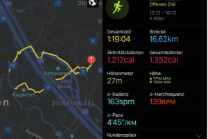 16,6k in Pace 4:45, aber auf 2 Teile. Bin von den Eltern in den 9. ins Büro und wieder zurück. Beim Zurücklaufen hab ich die Brandruine auf der Donauinsel gesehen. Und beim Zaha Hadid Gebäude gibt es nette Wandmalereien. Aktivität: Lauf Dauer: 01:19:04 Distanz: 16 620 Pace: 04:45 km h: 12.63 Schuhe: Asics App: Runplugged Uhr: Apple Watch Runkit rechnet: Christian ist im Mai bisher 203,780 km gelaufen, im Schnitt täglich 9,262 km, ein Plus von 4,73 Prozent gegenüber dem April, als Christian 8,844 km Tagesschnitt hatte. Christians Top-Monat bisher: Juli 2017 mit 10,433 km täglich. >> Zum Runkit Profil von Christian Drastil Weitere Einträge bzw. selbst gratis anmelden, Aktivitäten verwalten und bloggen! » Weiterlesen