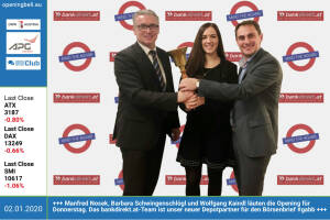 Manfred Nosek, Barbara Schwingenschlögl und Wolfgang Kaindl läuten die Opening Bel...