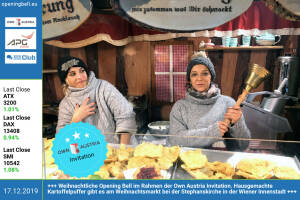 18.12.: .. die nächste weihnachtliche Opening Bell im Rahmen der Own Austria Invitation. Wiener Schneekugeln gibt es am Weihnachtsmarkt bei der Stephanskirche in der Wiener Innenstadt 17.12.: Weihnachtliche Opening Bell im Rahmen der Own Austria Invitation. Hausgemachte Kartoffelpuffer gibt es am Weihnachtsmarkt bei der Stephanskirche in der Wiener Innenstadt 16.12.: Maisie Gollner läutet die Opening Bell für Montag im Rahmen der Own Austria Invitation. Beim #IC19 Börsespiel landete die Dame mit Unido-Erfahrung im Spitzenfeld der Low Risk Klasse 13.12.: Ernst Huber läutet die Opening Bell für Freitag. In unserem "Podcast für junge Anleger jeden Alters" ist ein Megatrends-Interview mit dem Brokerage-Pionier live gegangen. U.a. auf Spotify http: www.... » Weiterlesen
