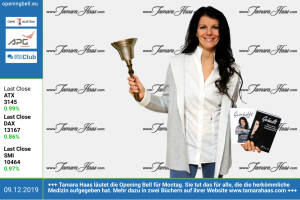 9 12.: Tamara Haas läutet die Opening Bell für Montag. Sie tut das für alle, die von der herkömmlichen Medizin aufgegeben wurden. Mehr dazu in zwei Büchern auf ihrer Website http: www.tamarahaas.com 6 12.: "Die Duetten" Isabel Gaber und Michaela Khom läuten die Opening Bell für Freitag. Am 24. Jänner sind die beiden mit der neuen CD "Für Hugo" (Producer Andy Baum ) live im Cafe am Heumarkt http: dieduetten.at . Hörproben: www.youtube.com watch?v=5XR5KXI7jeU&list=PLTOXbrUJkjmxzcKbgRRyb-Gp6AAqJg_5F 5 12.: Tobias Schober und Jakob Schober läuten die Opening Bell für Donnerstag. Die Brüder belegten bei der Investors Challenge #IC19 (trend, wikifolio, Hypo Tirol und bankdirekt.at) Rang 1 und 2. Bilder: photaq.com ... » Weiterlesen